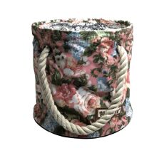 Цилиндрическая косметичка. Веревочные ручки. Ткань с цветочным принтом.
