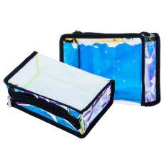 Голографическая косметичка, квадратной формы, с ручкой и на молнии. Выполнена из высококачественного ПВХ. Цвет: синий Размер: 15х15х