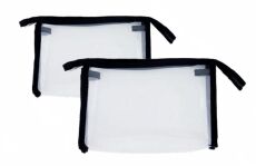 В наборе 2 косметички разного размера. Косметички тканевые черного цвета с прозрачной крышкой на молнии.