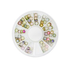 Набор разноцветных жемчужин для дизайна ногтей в золотой оправе. Служат для создания уникальных шедевральных дизайнов. С ними вы почувствуете себя нас
