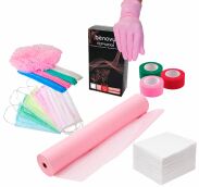 Ни одна процедура не происходит и не заканчивается без сопутствующих материалов и средств. Обязательно потребуются и всевозможная одноразовая продукция, чтобы процедуры были безопасными и для мастеров, и для клиентов. И, конечно, всё, что может потребоваться для обеззараживания поверхностей и рук.